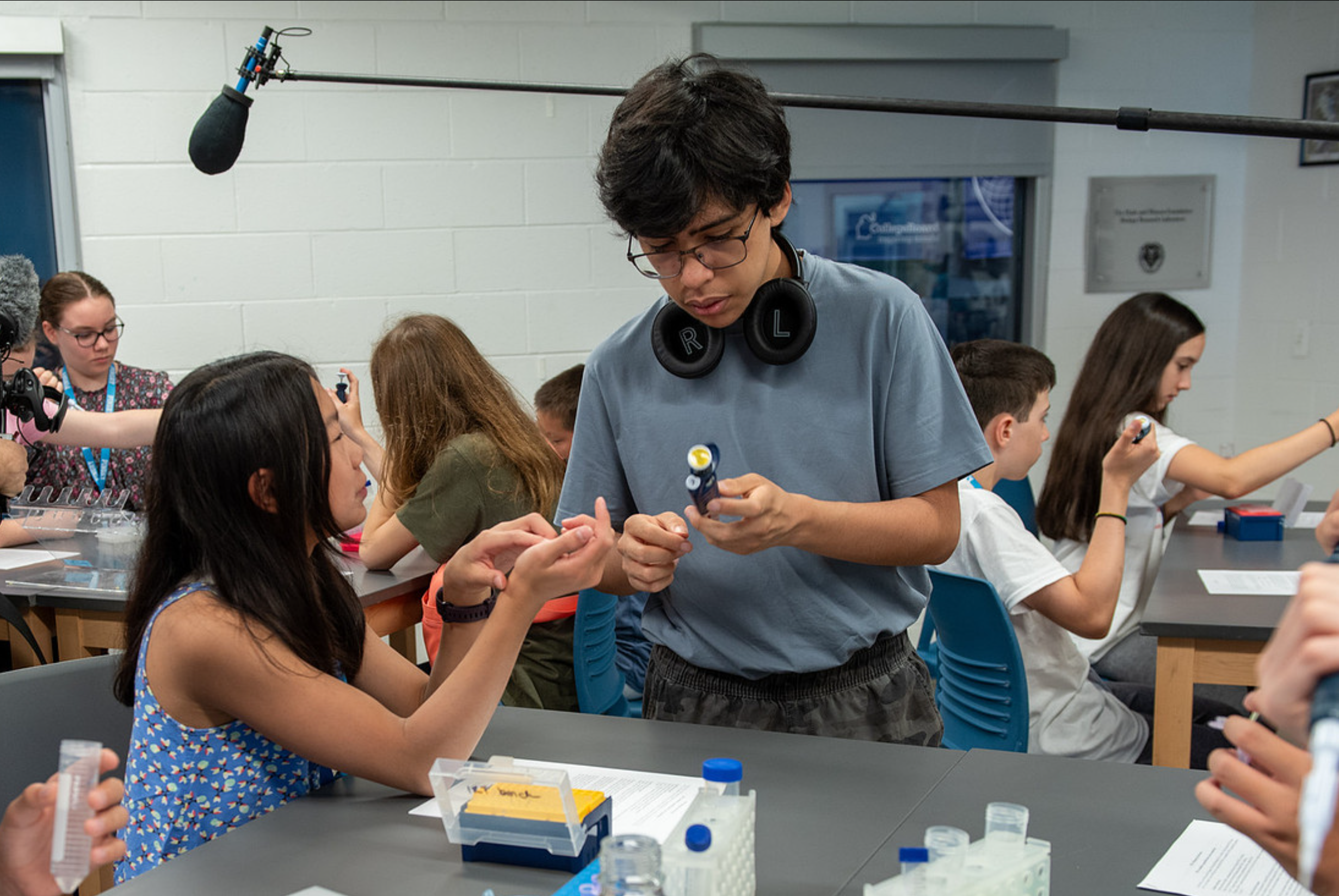 In July 2023, students from 17 states, Australia, and Canada gathered at The Pingry School in central New Jersey for the first Biochemistry and Physics Literacy Summer Institute. Seeing so many Zoom students in person and working together in the lab was both exciting and surreal. Sessions were led by Dr. Azadeh Samadani in physics, Professor Michael Castaldi in organic chemistry, and Dr. Daniel Fried in biochemistry. Parent sessions were led by Dr. Hui Jiang. The week concluded with a visit to Princeton University, where students presented research posters to chemistry graduate students, sharing their work in a true academic setting.